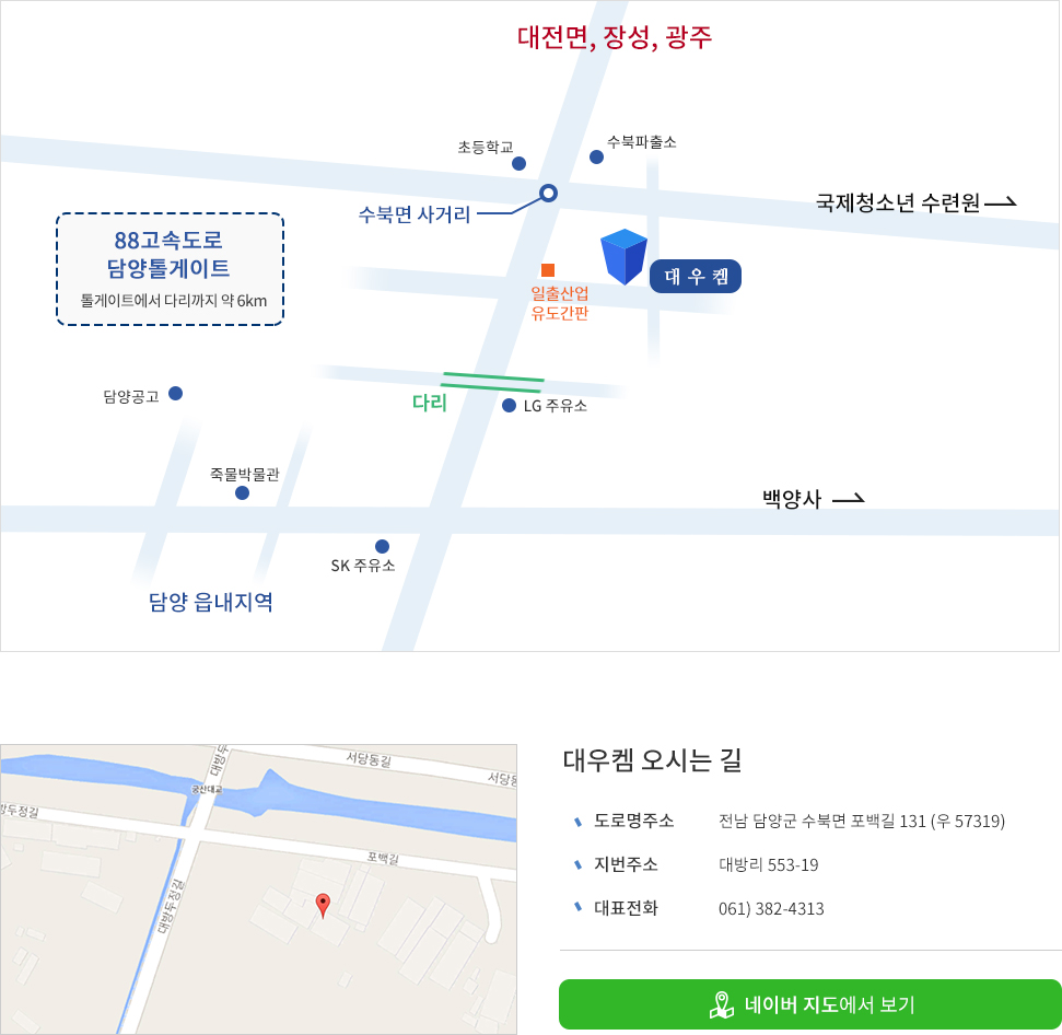 전라남도 담양군 수북면 포백길 131, 전화 : 061-382-4313, 팩스 061-382-4314